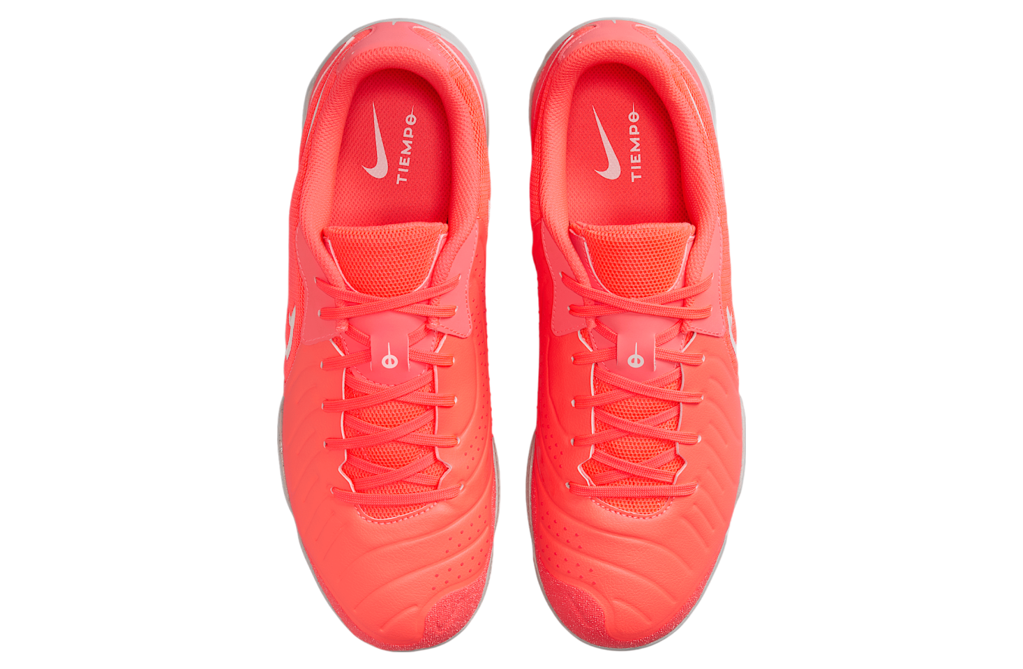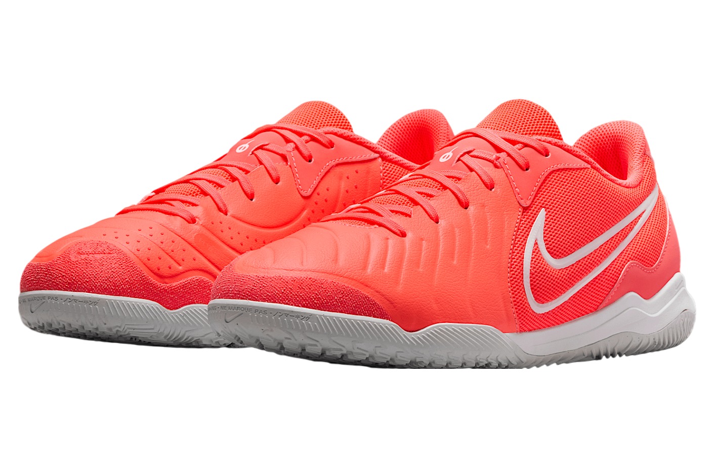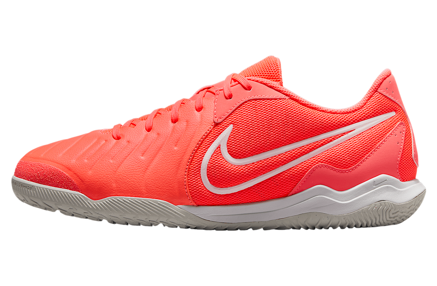 The Nike Tiempo Legend 10 Academy Low IC in Hot Lava and White is a remarkable addition to Nike's esteemed line of indoor soccer shoes, designed to offer exceptional performance and unparalleled style. Boasting a striking "Hot Lava" colorway, the shoe is as visually impactful as it is functionally superb, ensuring that players not only stand out on the indoor court but also benefit from enhanced agility and control. The shoe features a comfortable, low-profile fit that is crucial for developing a close connection between the player and the ball, allowing for precise dribbling and accurate strikes whether you are a playmaker or a goal-scorer.