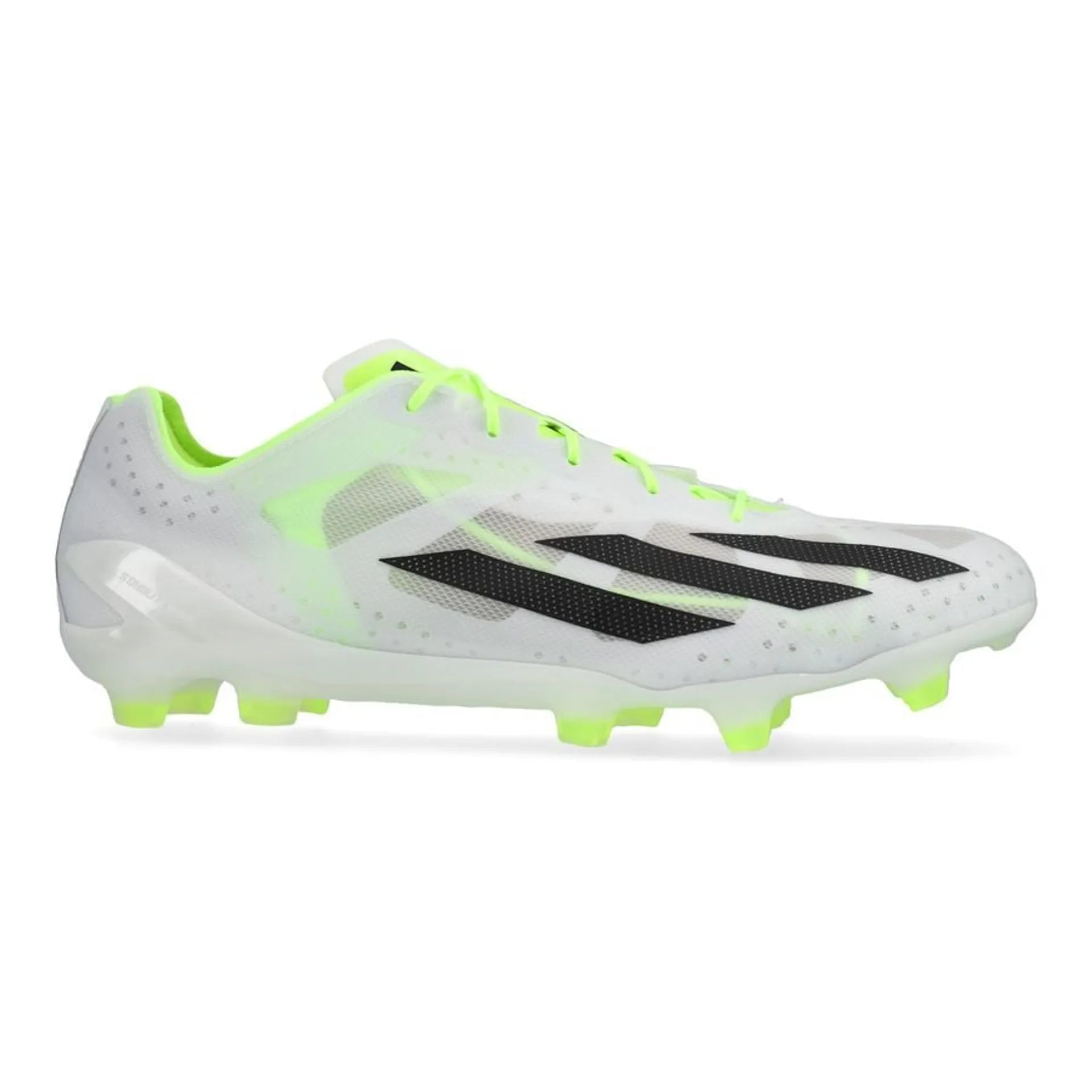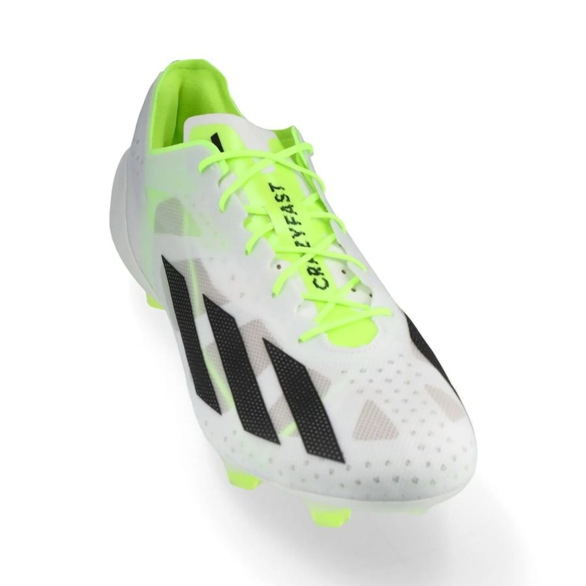 Feel the rush of ferocious pace with adidas X Crazyfast+ FG soccer cleats in White/Core Black/Lucid Lemon, featuring a streamlined, stripped-back design for extreme speed in every direction.